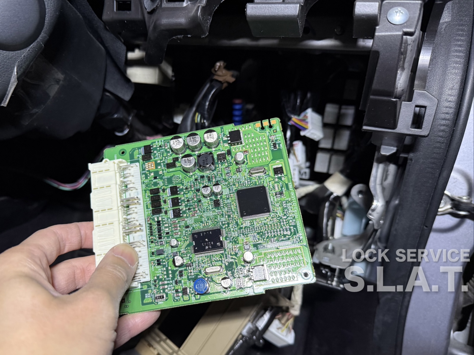 車両から基板を取り外したら作業車に戻って、いつも通りの方法でスマートキーを登録。