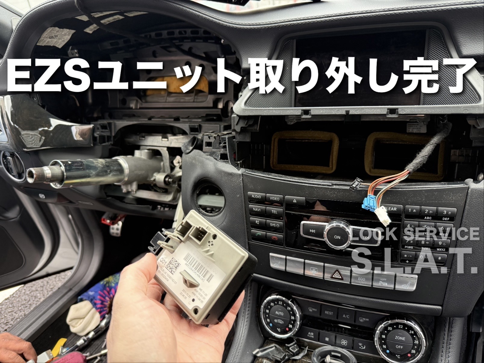 左ハンドルのディーラー車なんですが、こちらの車輌は他の車種とは違いEZSをポコっと取り外すことができません。