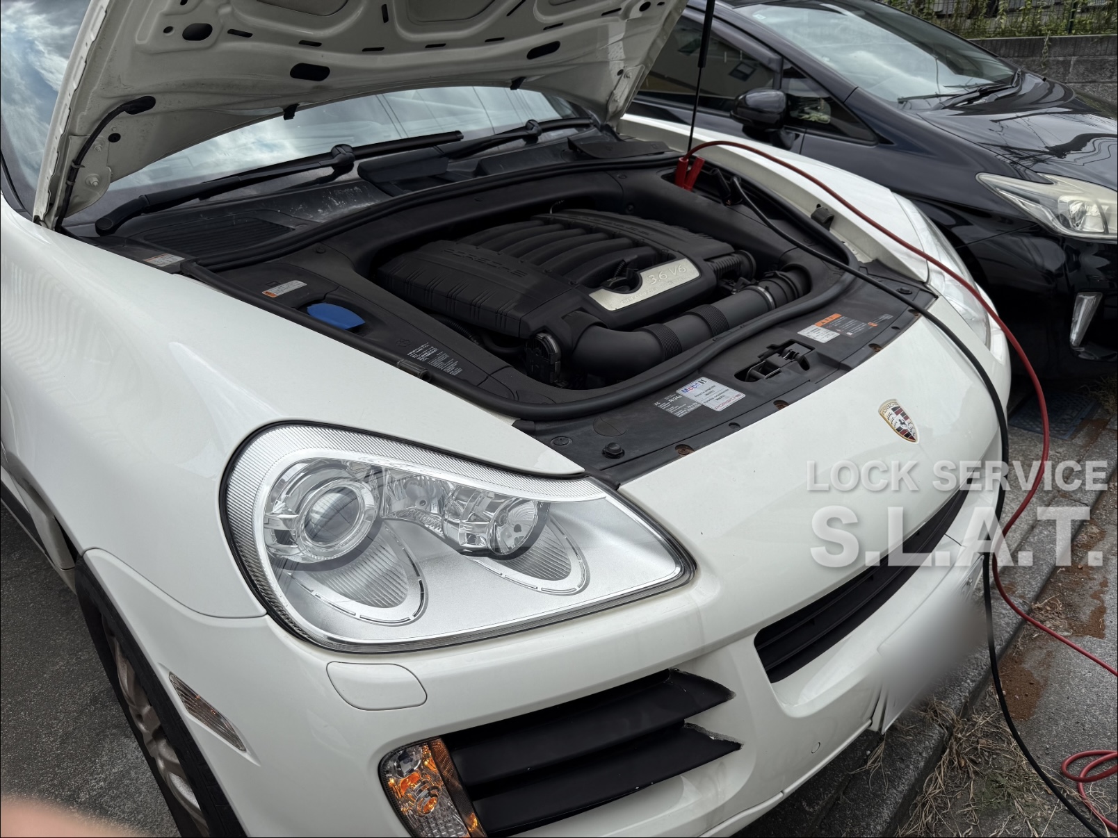 作業中ことあるごとにセキュリティアラームが発報し、ほぼ鳴り止まないカイエン。